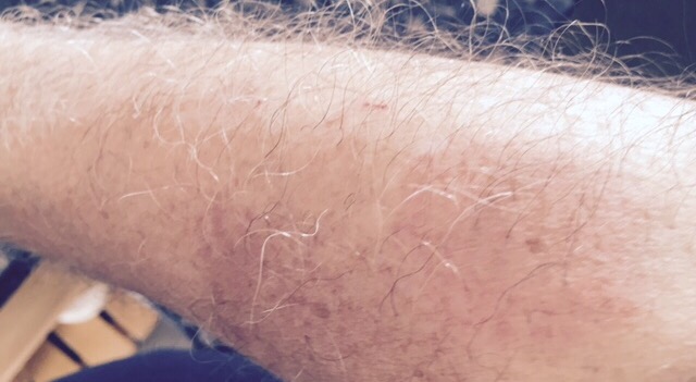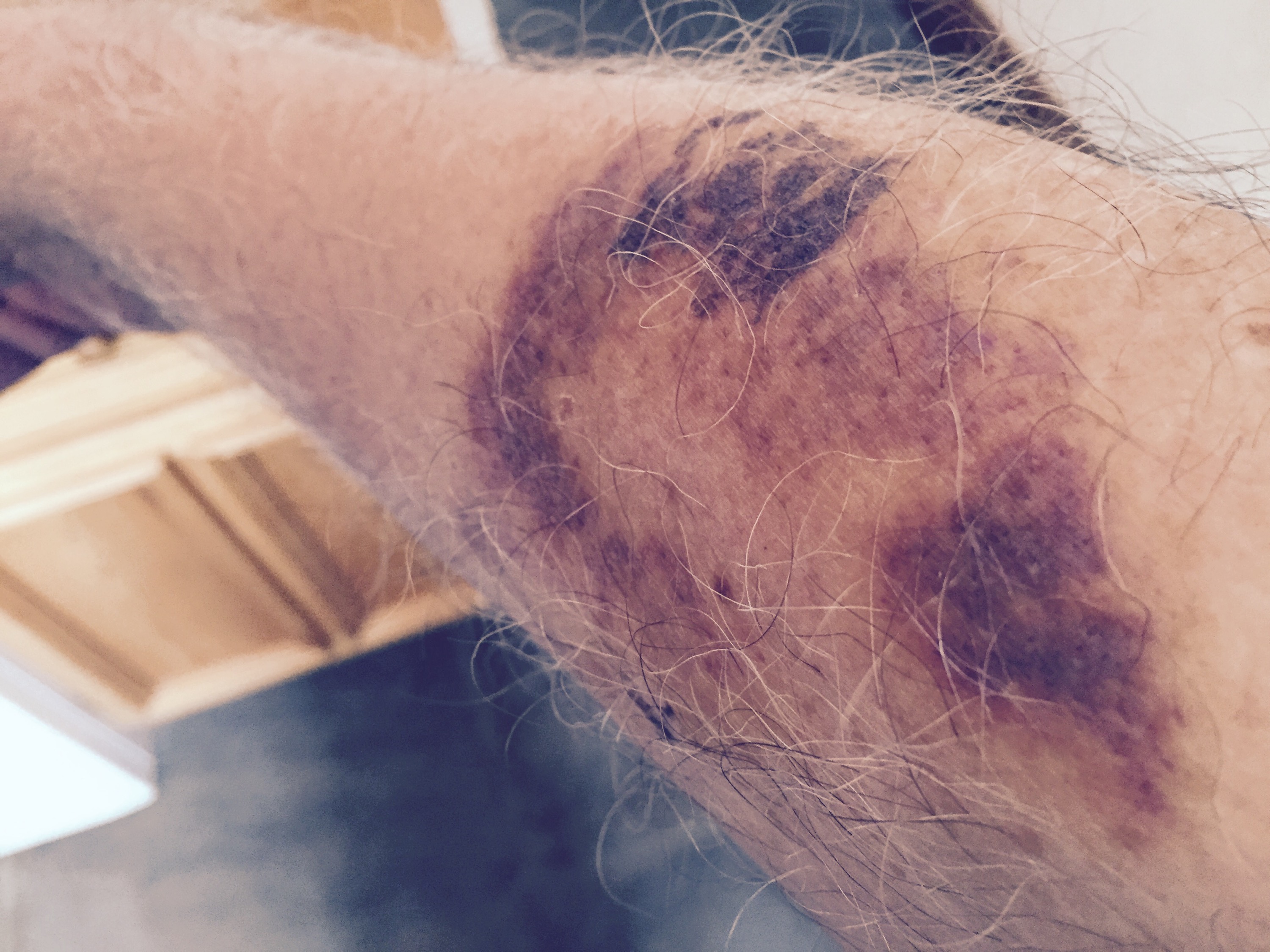 Would like to show the two photos from one of our clients who has only had two sessions of moxibustion treatment between 12 and 19 days after the operation, Laparoscopic cholecystectomy. This patient only started his moxibustion treatment 12 days after the operation and only got a chance to do the treatments twice within 7 days. There are bruises left on the patient’s right arm where the needle were kept during the operation.